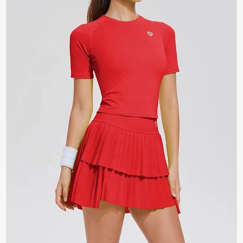 テニスドレステニスドレスショートTシャツフィットネスゴルフウェアヨガセット女性ピックルボールテニススカートセット