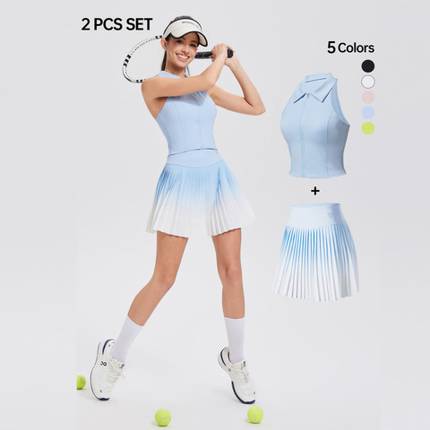 最新スポーツウェア2個テニススカートセットジムヨガセットピックルボールスカート女性用フィットネス服